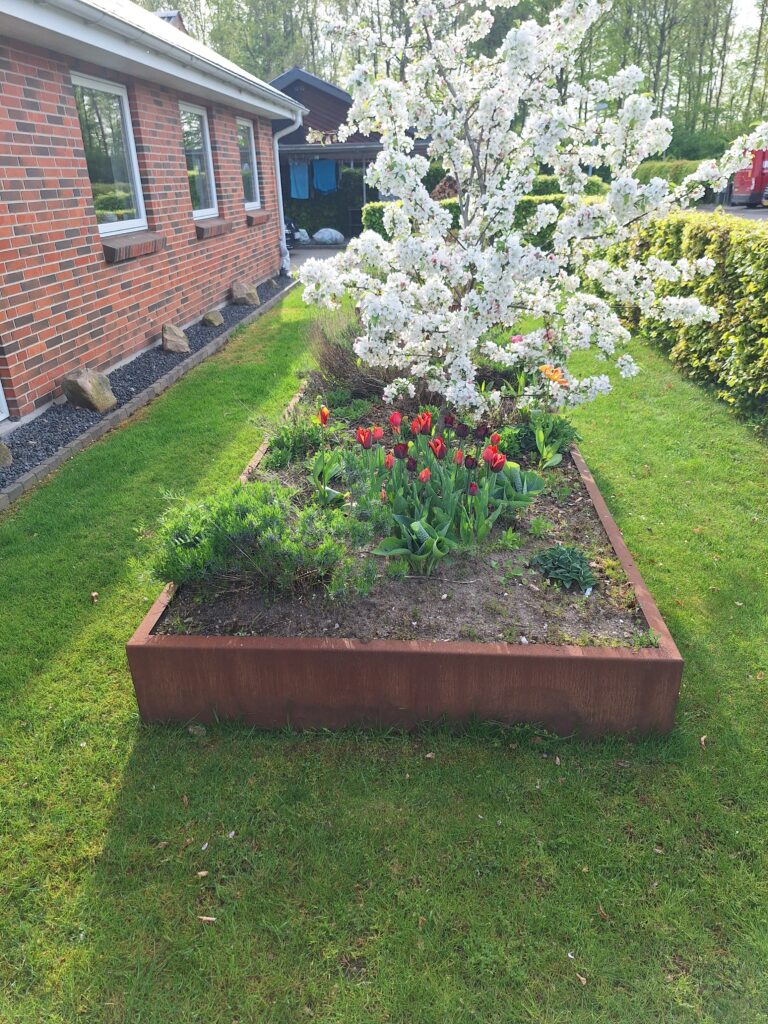 Cortenstål er kendt for sin karakteristiske rustne patina, der opstår, når materialet udsættes for vejrfaktorer. Denne patina beskytter stålet mod yderligere korrosion, hvilket gør cortenstål både holdbart og næsten vedligeholdelsesfrit. Det rustne udseende passer godt ind i mange moderne havekoncept og kan skabe en flot kontrast til de grønne planter. Cortenstålens æstetiske appel gør det til et populært valg i designorienterede haver, hvor det giver et råt, men elegant udtryk. På grund af materialets evne til at “modne” og få en smuk, naturlig overflade er det en investering, der kun bliver flottere med tiden.